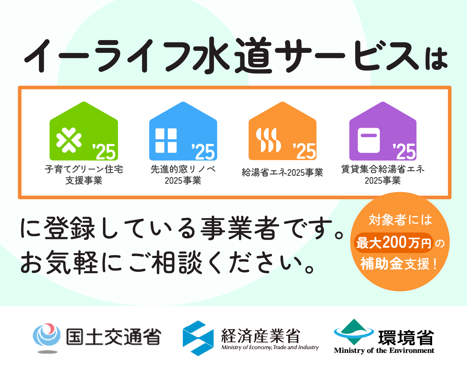 イーライフグループで各種住宅設備の取付け工事を行っていただいた方限定で、修理費用などを負担する安心の10年保証にご加入いただけます!