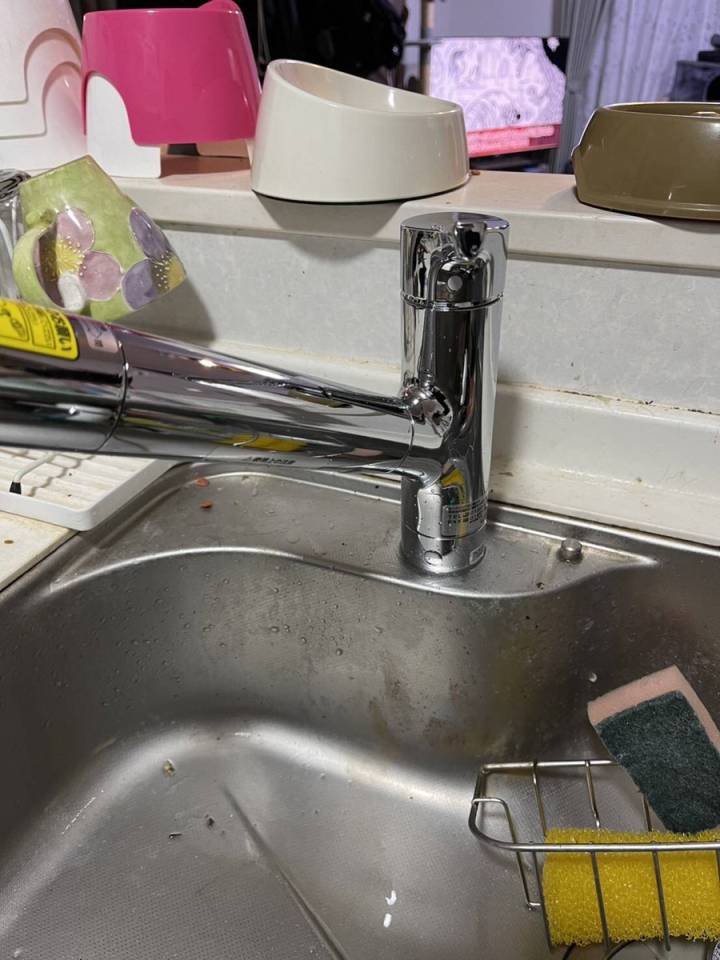 お客様より「蛇口のレバーの部分から水漏れするので修理してほしい」とのご要望をいただき、台所の蛇口を交換させていただきました。